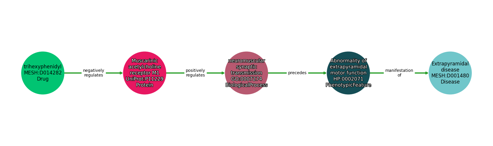 Trihexyphenidyl | NEGATIVELY REGULATES | Muscarinic Acetylcholine Receptor M1 |