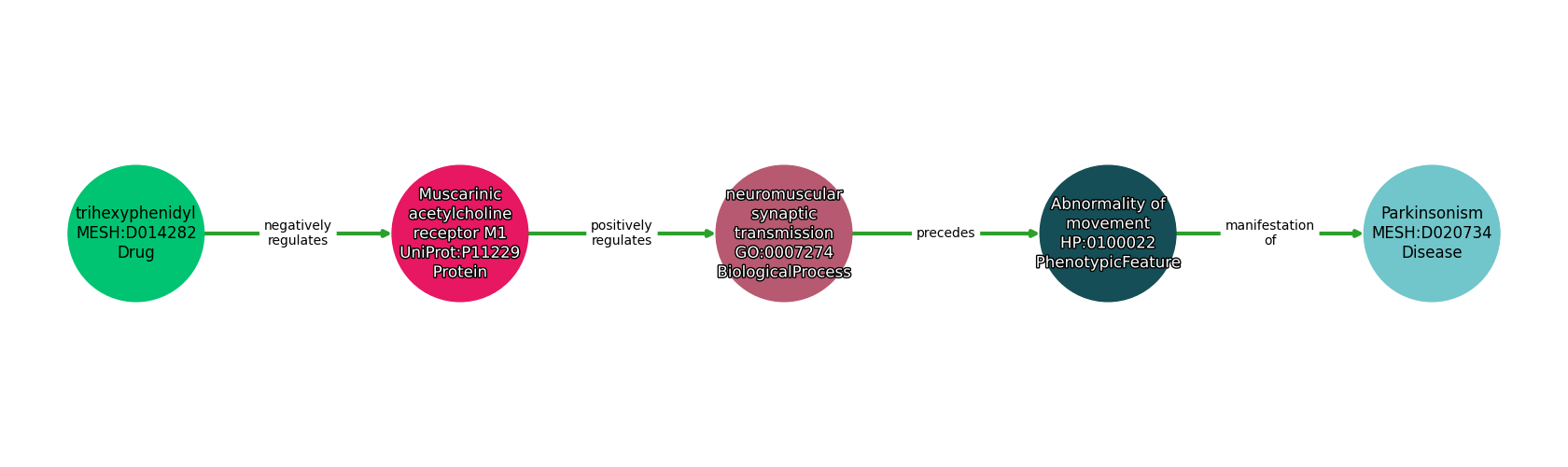 Trihexyphenidyl | NEGATIVELY REGULATES | Muscarinic Acetylcholine Receptor M1 |