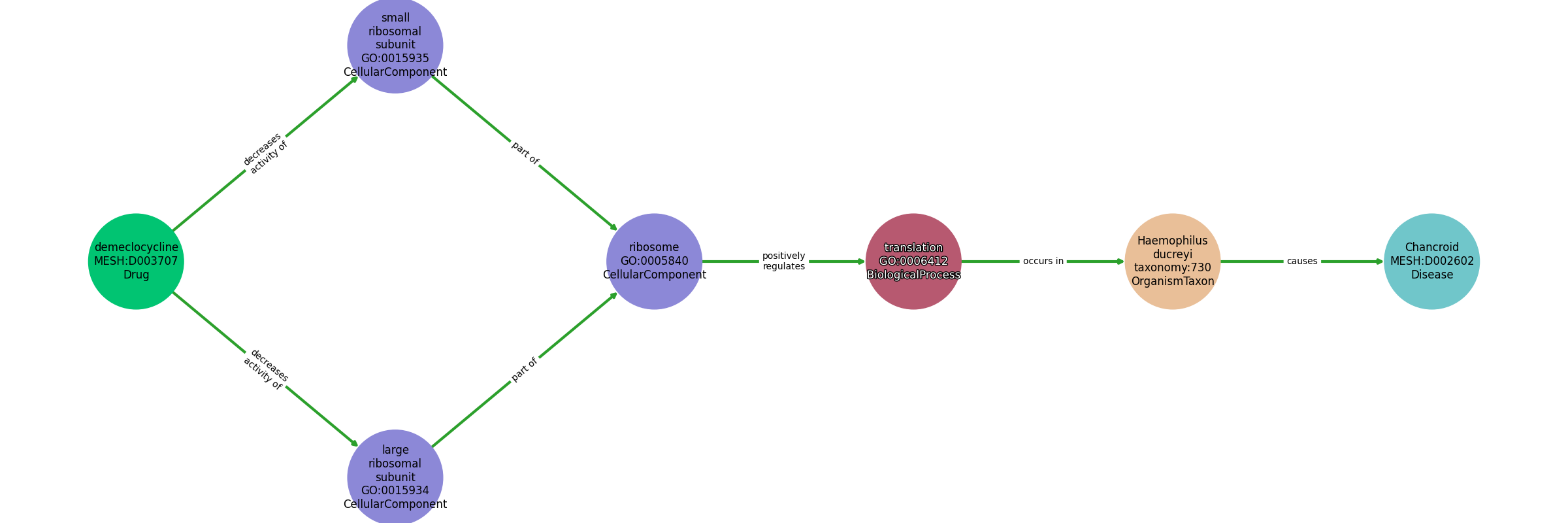 Demeclocycline | DECREASES ACTIVITY OF | Large Ribosomal Subunit |