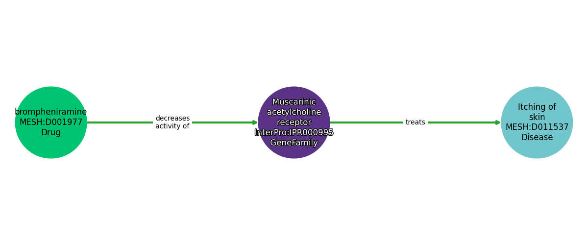 Brompheniramine | DECREASES ACTIVITY OF | Muscarinic Acetylcholine Receptor |