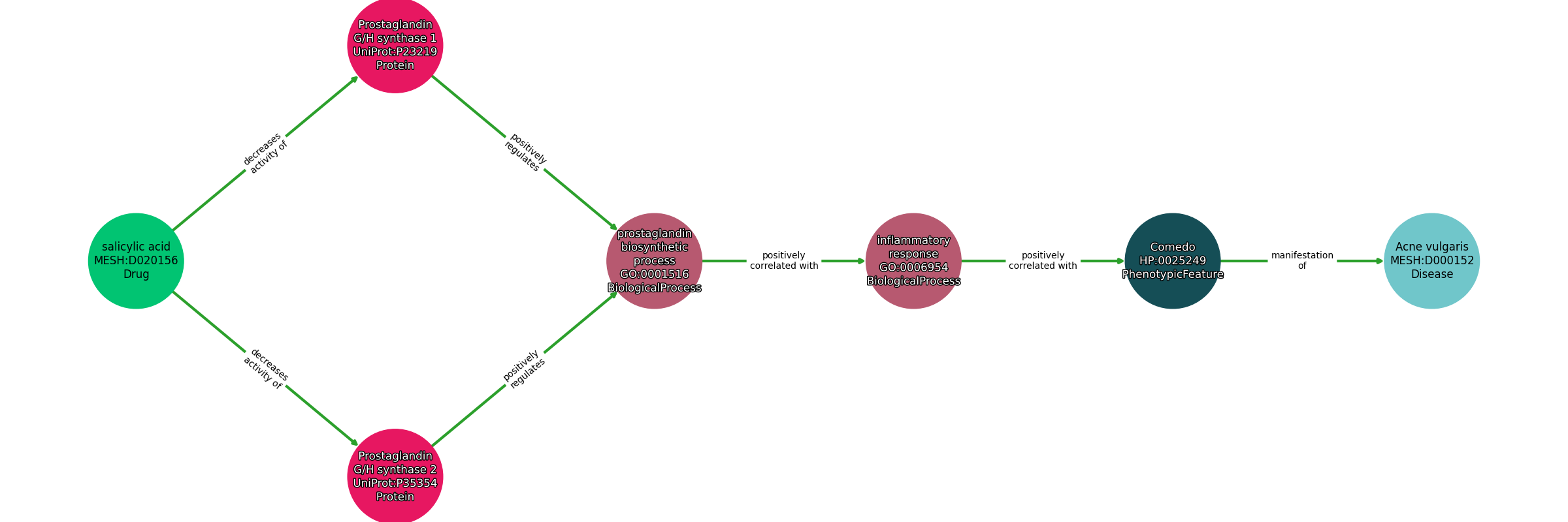 Salicylic Acid | DECREASES ACTIVITY OF | Prostaglandin G/H Synthase 1 |