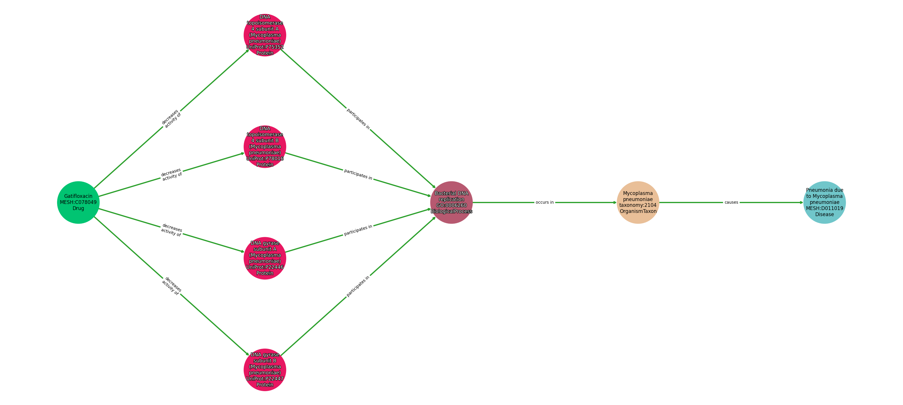 Gatifloxacin | DECREASES ACTIVITY OF | Dna Topoisomerase 4 Subunit A (Mycoplasma Pneumoniae) |