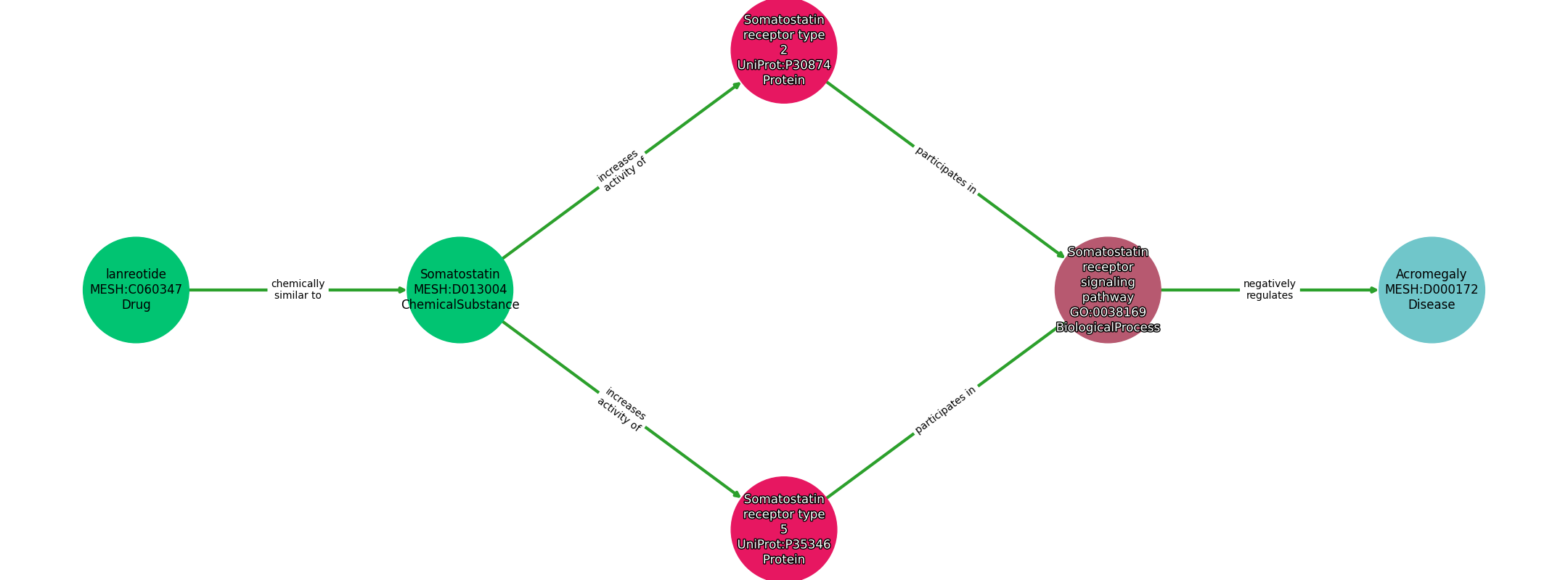 Somatostatin Receptor Signaling Pathway | NEGATIVELY REGULATES | Acromegaly |