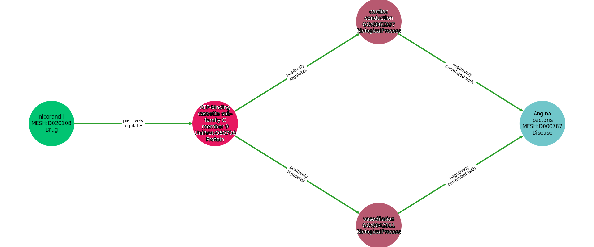 Nicorandil | POSITIVELY REGULATES | Atp-Binding Cassette Sub-Family C Member 9 |